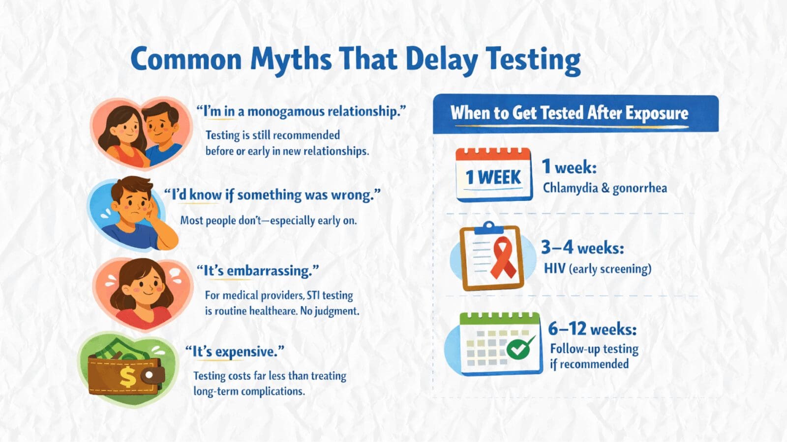 Many STIs do not cause immediate symptoms. Testing based on time and exposure, not symptom, is what protects long-term health.